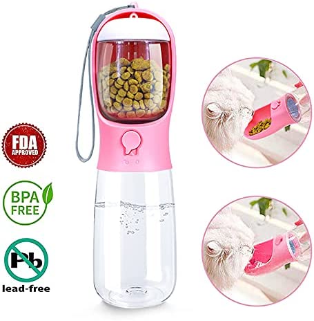 【2 In 1 Portable Design】:Pet water bottle is designed not only to hold water, but also to carry food.