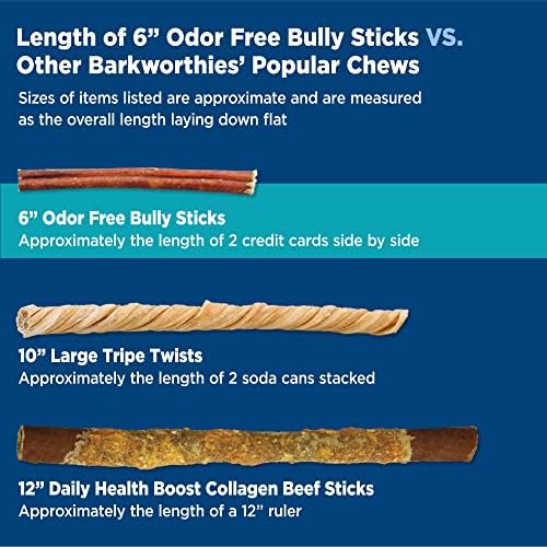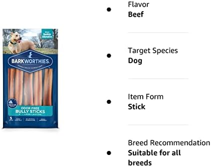 Feeding Guide: Please supervise your dog when giving any chew or treat and ensure your pup has easy access to fresh water before, during, and after treat consumption. Remove any small or broken pieces to prevent any potential choking hazard. Be mindful of your pet’s age, health, and current diet conditions when selecting products. Please note, our Odor Free Bully Sticks are rich in protein; If they are a new treat for your dog, we recommend only letting your dog chew about ½ of a stick at a time to avoid tummy upset due to the increased protein. After they have enjoyed about 3 to 5 sticks, their tummy should be familiar with the increased protein and you can treat at your discretion! Intended for supplemental feeding only. Treats should not make up more than 10% of total calorie intake. NOTE: Our dog treats & chews are NOT for human consumption.