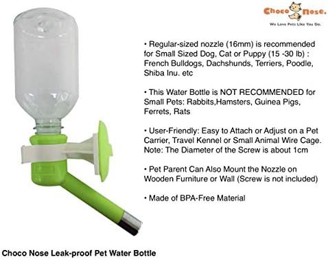 🐾 U.S Patented Leak-proof nozzle/ No Drip Dog Water Bottle/ BPA Free/ Mess Free/ 10.2 oz Capacity. Regular-sized nozzle (16mm) is recommended for Small-Medium Sized Dog (15-30 lb): Beagle, Corgi, Dachshund, French Bulldog, Mini Poodle, Shiba Inu, Schnauzer, etc;Large-sized Rabbit; Cat.