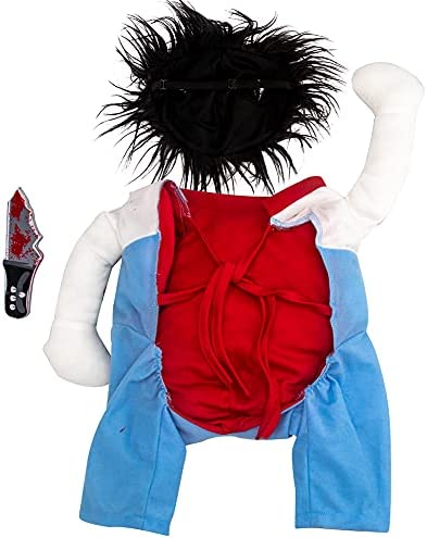 [WHO’S A GOOD GUY] It is very important to remind your pup who’s good. Your cool boys and girls need to know that kind of thing or they might become susceptible to the prying spirits of crazy killers. Fortunately, the worst-case scenario of possessions is that they hunger for a few extra treats. You’ll have a great time with your little murderer in this crazy dog doll costume.