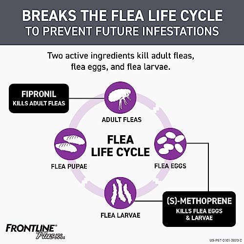 Break the flea life cycle with FRONTLINE Plus. Specially formulated with fipronil and (S)-methoprene to kill existing adult fleas, flea eggs and flea larvae to guard against further infestations for flea control.