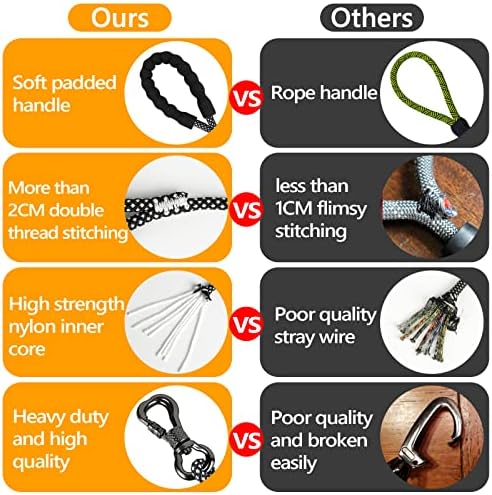 Soft Padded Handle: The handle of long leash is made of a soft and sturdy EVA,the thickness was upgraded to 0.24 inches, 33.3% thicher than others, which is for amazing comfortable shock grip, protects your hand from rope burn, and will afford you and your dog many enjoyable walks together hassle-free.