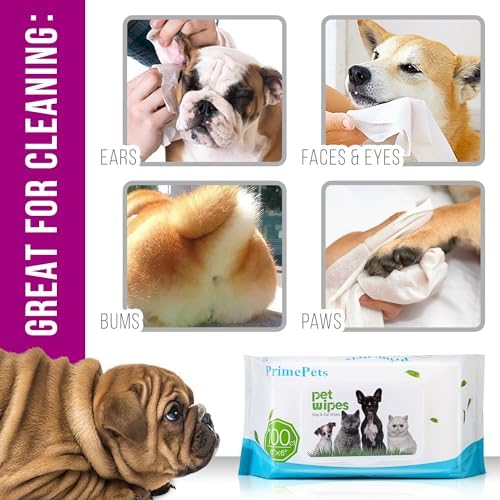 User Friendly: Our dog cleaning wipes (8″ x 6″) are large enough for you to easily hold and wipe your dog’s face, bum, paws, ears, and around the eyes, The quilted material is thick and durable enough for heavy coat pets, but can also be used on cats and other fine-haired pets